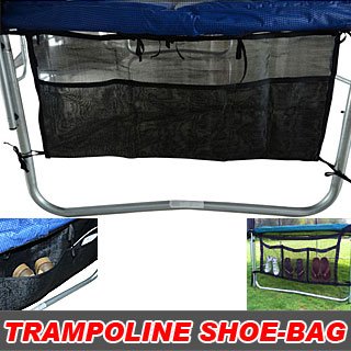 Trampolines are always surrounded with a sea of shoes, socks and drinks which can be quite hazardous, if lots of children are playing around the trampoline. A trampoline shoe bag can solve this problem by storing all the shoes and other items in a bag, and prevent falls that could occur by tripping over the clutter. Not only will the trampoline shoe bag store all the shoes, but it will also keep any shoes and socks dry if the ground is damp.